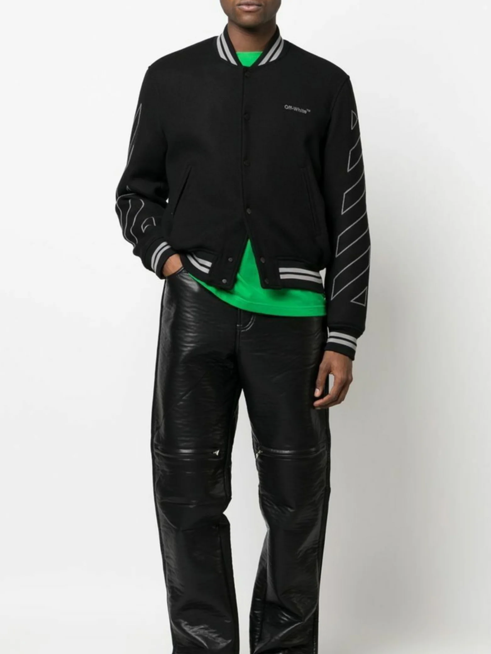 Black Diagonal 3D Line Varsity Jacket Off-White