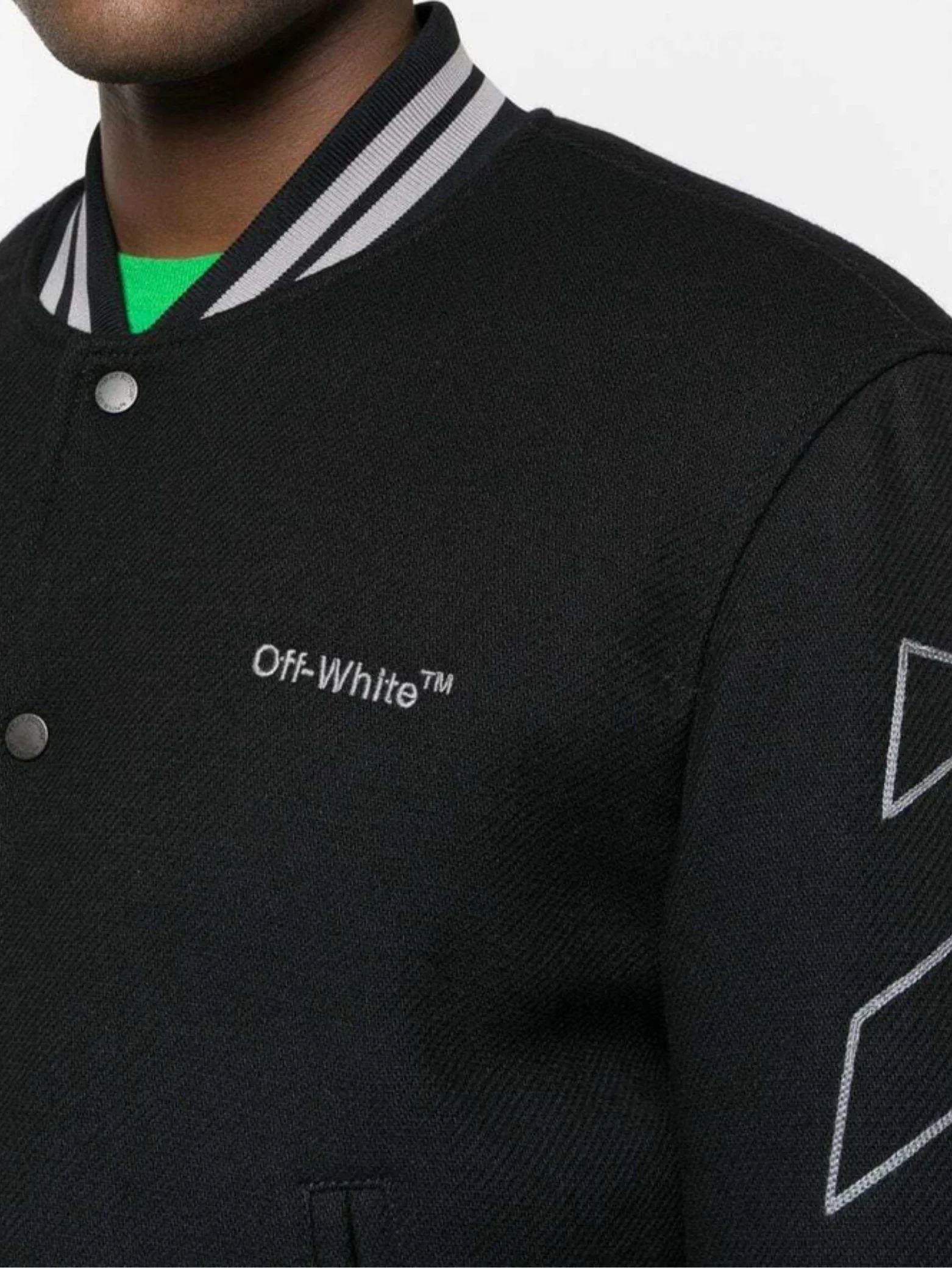 Black Diagonal 3D Line Varsity Jacket Off-White