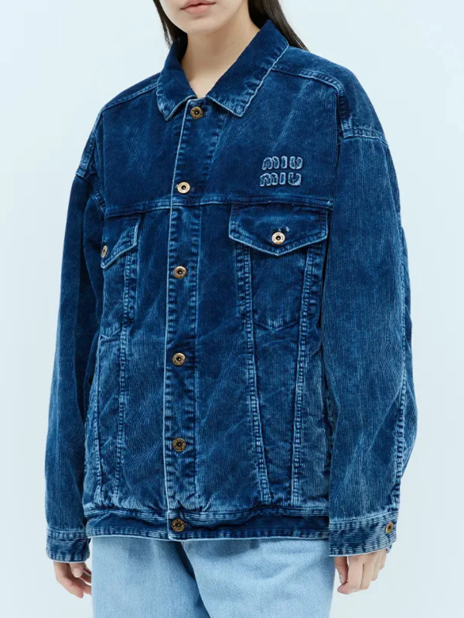 Miu Miu Washed Velvet Blouson Jacket in Indigo Blue